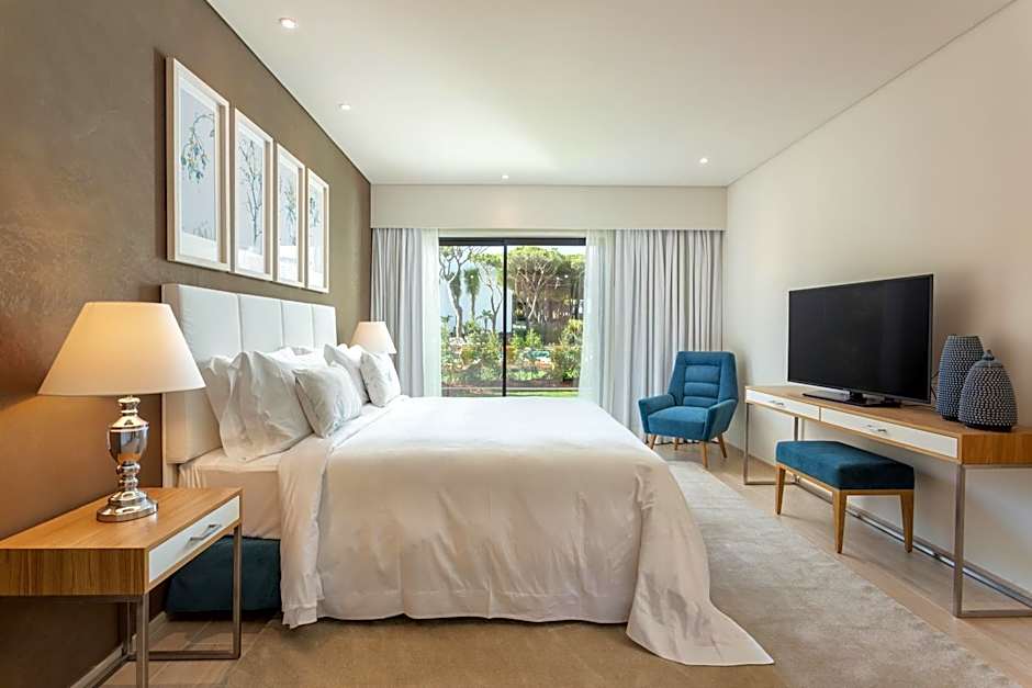 Zwei Außenpools laden zu sonnenverwöhnten Vergnügungen ein, darunter ein nur für Erwachsene reservierter Pool für ruhige Bäder nach einem sonnigen Tag. Das kulinarische Angebot ist eine Feier der Vielfalt: elf gastronomische Einrichtungen vor Ort — Jardim Colonial, Yakuza, Mirador und weitere — servieren alles von gehobenen Abendessen bis zu legeren Snacks im Corda Cafe oder im Portulano. Für etwas Verwöhnprogramm stehen vor Ort Spa-Behandlungen und Massagen zur Verfügung (gegen Aufpreis) und verleihen dem Küstenaufenthalt zusätzlichen Glanz.